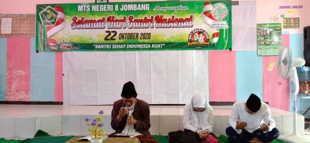 Jombang, 22 November 2020, MTsN 8 Jombang memperingati hari santri nasional. peringatan hari santri merupakan kegiatan rutin yang dilaksanakan setiap tahunnya di MTsN 8 Jombang. pada tahun ini peringatan hari santri mempunyai moto “Santri Sehat Indonesia Kuat”,