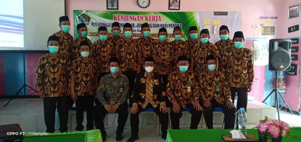 Jombang, 20 Maret 2021. Plt kepala Kemenag Kab. Jombang Drs. H. Leksono, M.Pd.I dan Kasi Pendma Arif Hidayatullah, M.Pd.I melaksanakan kunjungan Kerja di MTsN 8 Jombang, kegiatan ini dalam rangka meninjau langsung kondisi Madrasah dan Membarikan binaan Kepala, Guru dan Staf MTsN 8 Jombang.