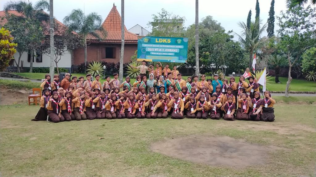 MTsN 8 Jombang (humas) – MTsN 8 Jombang menggelar Latihan Dasar Kepemimpinan Siswa (LDKS) bagi para siswa yang menjadi calon pengurus Organisasi Siswa Intra Sekolah (OSIS). LDKS diadakan di Villa CMA Pacet, Mojokerto sejak Kamis (01/09/2022) hingga Jumat (02/09/2022). Diikuti 62 siswa dan 7 guru pembina.