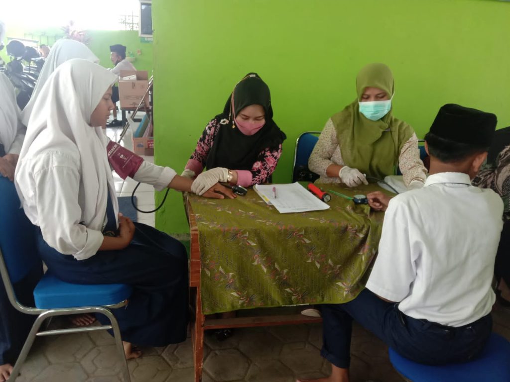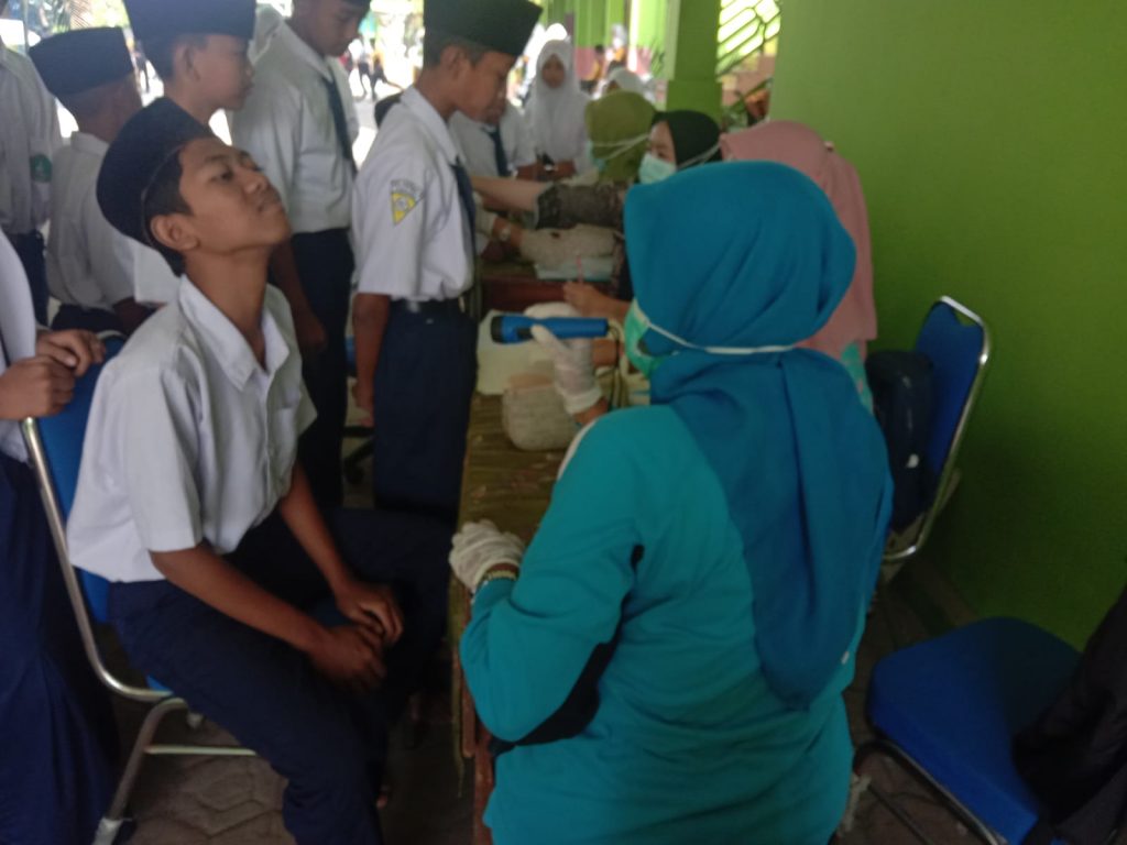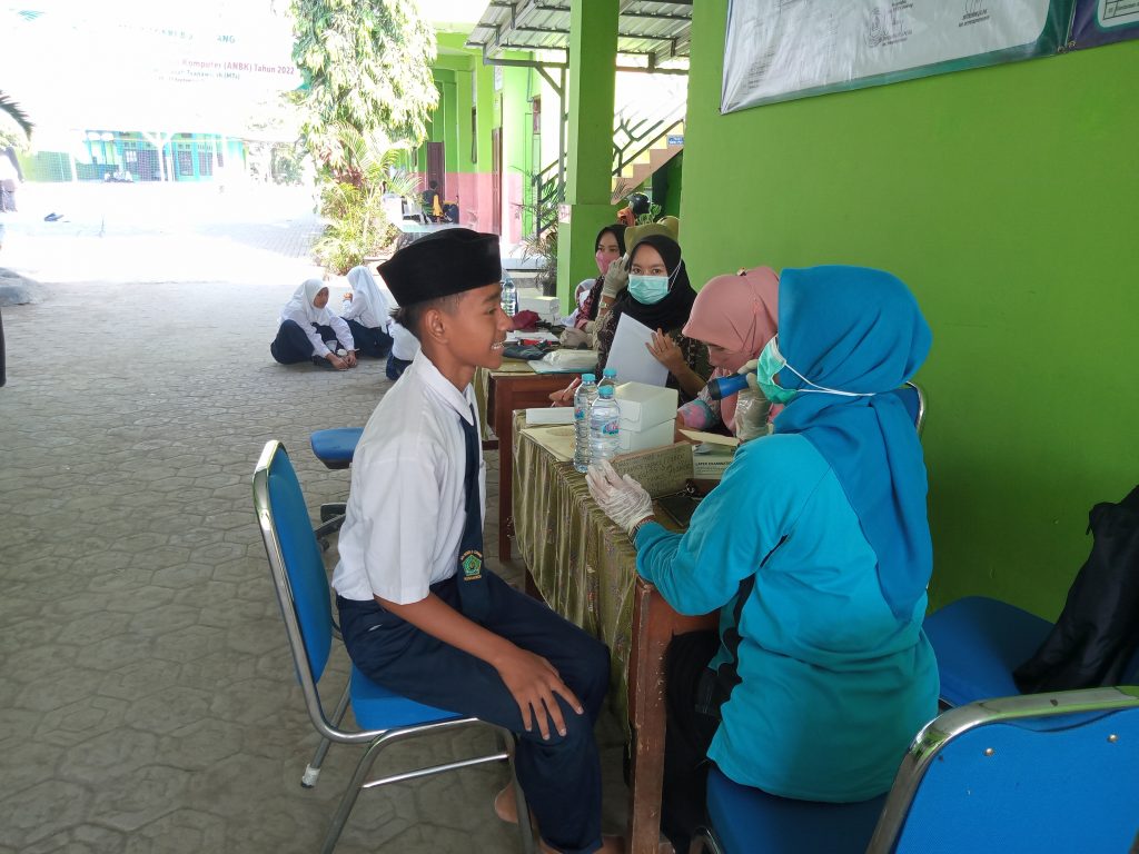 MTsN 8 Jombang (humas) – Selasa (20/09/2022) MTsN 8 Jombang bekerjasama dengan Puskesmas Blimbing Kesamben mengadakan screening kesehatan siswa. Screening dilaksanakan mulai pukul 08.00 WIB dan diikuti seluruh siswa kelas VII berjumlah 164 siswa dengan diperiksa satu persatu oleh team kesehatan Puskesmas. Kegiatan tersebut bertujuan untuk mendeteksi awal tentang kondisi kesehatan siswa.